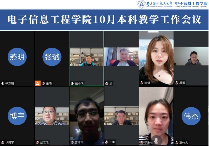 为有序推进本学期教学工作、加强规范化管理,10月7日,电子信息工程极速炸金花 副院长张小飞带领本科教学工作团队开展教学工作阶段会议。院长助理夏伟杰,系教学副主任王毅、晋本周,专业执行负责人胡志忠、周博,实践教学中心副主任邱旦峰,教师代表华博宇,极速炸金花 教学办参与此次会议。