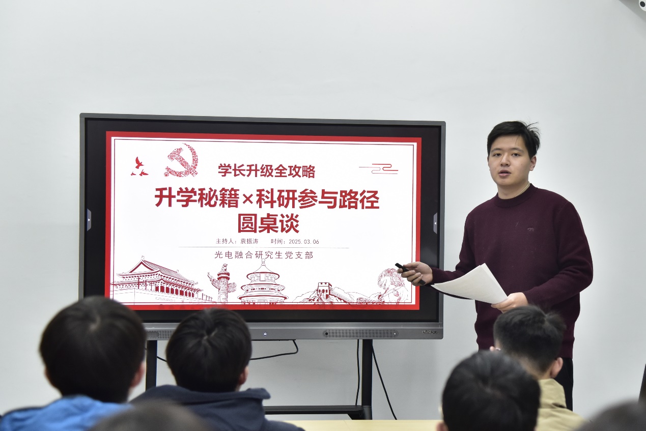 为进一步深化党有号召、团有行动的制度体系,压紧压实全面从严治党、治团的主体责任,极速炸金花 树牢“一切工作到支部”的鲜明导向,全面落实党建带团建制度,形成高年级党支部带低年级团支部的精准共建模式,以“第一议题”学习制度带动共学、共研、共悟,引领党团支部在政治上对标、思想上同心、行动上追随,全面激发支部活力。3月6日,光电融合研究生党支部与0422202本科生团支部在一站式慧园社区联合举办“升学秘籍×科研参与路径圆桌谈”党团活动。活动聚焦全国两会、升学规划、科研参与等主题,通过支部领学、经验分享、现场答疑等形式,搭建本研协同成长新平台。