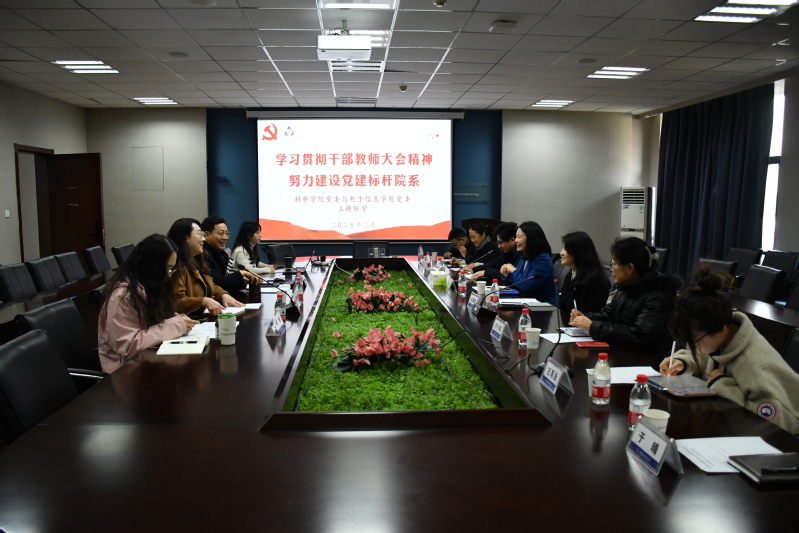 2025 年 3 月 6 日周四上午 9:30,材料科学与技术极速炸金花 党委与电子信息极速炸金花 党委在电子信息极速炸金花 楼 209 会议室举行了主题为“学习贯彻干部教师大会精神,努力建设党建标杆院系”的联学活动。