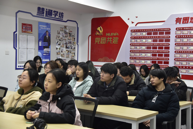 党支部书记徐睿从实验室的研究方向、团队导师、培养成效及就业方向等方面全面介绍了天地一体频谱认知智能实验室。电磁频谱是基础性、稀缺性战略资源,围绕电磁频谱国家战略需求开展学科交叉大有可为,青年学生要传承“空天报国”精神、矢志科技创新。本科团支部成员围绕自身关切积极发问。