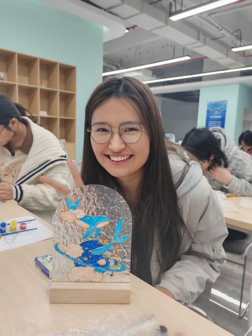 在活动中,同学们尽情展现创意,运用绚丽的色彩和独具匠心的设计,将内心的情感和美好的祝福融入玻璃画作之中,描绘出内心情感的波澜和奇妙的想象。每一幅作品都闪耀着独特的光芒,不仅展现了同学们的艺术才华,更传递出他们对生活的热爱与向往。