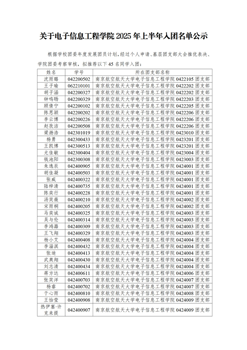 关于电子信息工程极速炸金花 2025年上半年入团名单公示