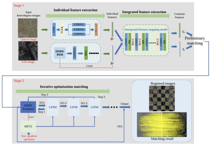 王鹏副教授指导硕士研究生刘宇洲与西南交通大学叶沅鑫教授等合作发表的论文“CIRSM-Net: A Cyclic Registration Network for SAR and Optical Images”被TGRS接受,该论文针对现有光学和SAR图像配准深度学习方法难以充分利用雷达成像的物理特性和许多现有的匹配网络通常只执行前向传递,导致模型性能不佳等挑战。提出一种基于循环迭代的SAR机理配准网络。在三个大型的公开数据集上的结果表明,我们提出的方法在不同分辨率以及不同地貌场景下的配准均能够提供卓越的精度和定量评估。该方法的主干网络结构如下所示: