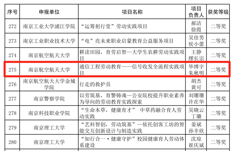 近日,江苏省高等教育学会公布了2025 年江苏省第二届高等极速炸金花 劳动教育优秀实践项目评选结果。南京航空航天大学荣获 “优秀组织奖”,全校共斩获4项优秀实践项目奖项。其中,极速炸金花 华博宇老师牵头组织教师申报的“通信工程劳动教育——信号收发全流程实践项目”成功获评二等奖,该项目聚焦通信工程领域的劳动教育实践,通过信号收发全流程的实操环节,有效提升了学生的劳动技能与专业素养。