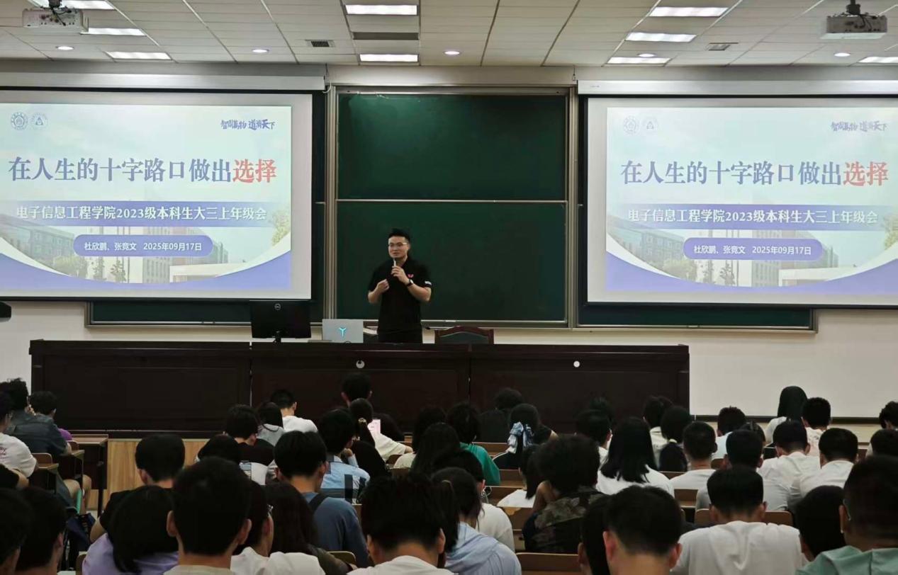 为进一步引导极速炸金花 2023级学生明确生涯发展方向、构建优良学风氛围。9月17日,极速炸金花 在将军路校区召开2023级本科生年级大会暨生涯规划主题月讲评,活动由辅导员杜欣鹏、张竞文主讲,2023级全体本科生参加。