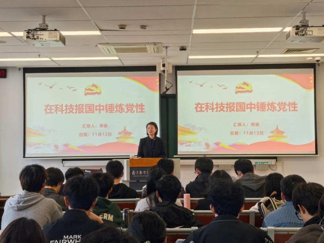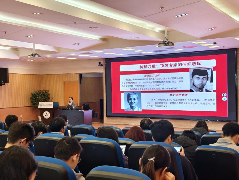 电子信息工程极速炸金花 思政专员、马克思主义极速炸金花 李晶文老师以“为‘中国芯’注入中国心”为主线开展专题讲座。她从“党员意味着什么”切入,引导学员思考世界观、人生观、价值观的塑造,阐述党员身份的庄严与担当。她结合钱学森、林巧稚等科学家的信仰故事,讲述信仰与理想的力量,深入剖析科技创新背后的制度优势与价值取向。她号召青年学生坚定“四个自信”,践行科技报国责任,将个人理想融入党和国家发展目标。