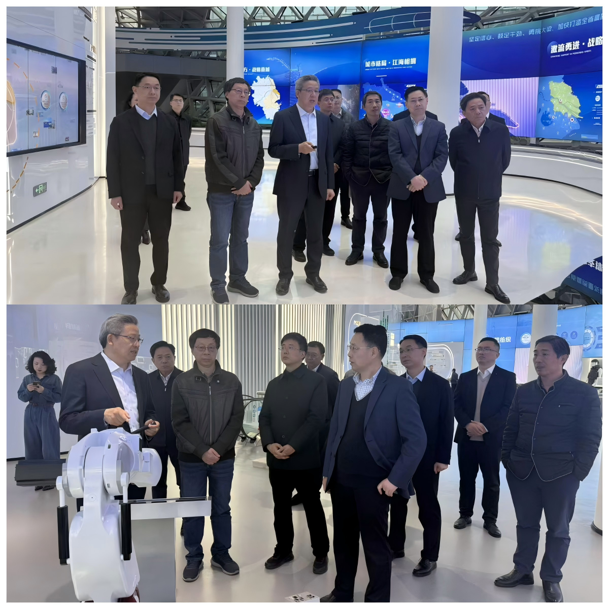 在南通创新区规划展示馆,南通市委书记、四院88级校友吴新明亲临现场、如数家珍,系统介绍了南通市的城市发展战略、产业空间布局与科技创新生态。调研组深入了解了南通在区域发展中的定位与规划,切身感受到地方经济的蓬勃活力与发展潜力。