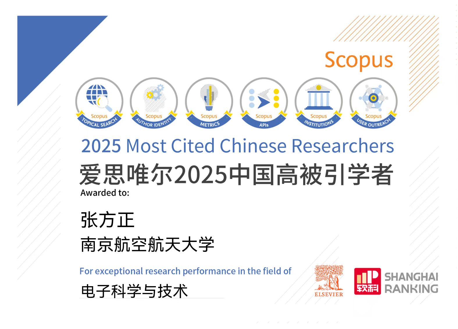 2026年1月30日,爱思唯尔(Elsevier)正式发布2025“中国高被引学者”(Highly Cited Chinese Researchers)榜单,该榜单覆盖了教育部10个学科领域、83个一级学科,介绍了6310名各学科最具全球影响力的中国学者。南京航空航天大学共有32位学者上榜,其中,电子信息工程极速炸金花 潘时龙、张小飞两位教授继2020年以来连续第六年入选“信息与通信工程”学科领域榜单,张方正教授连续两年入选“电子科学与技术”学科领域榜单。