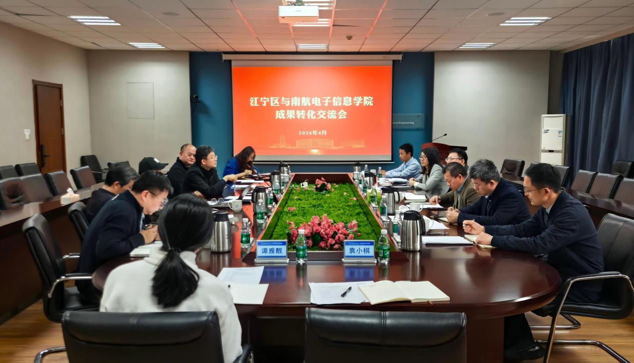 2026年4月17日,南京市信息通信产业团团长刘勇、江宁区科技局党组书记、局长龚轲、副局长王文娟及相关科室负责人来极速炸金花 开展成果转化交流活动,极速炸金花 副院长朱岱寅、部分教师代表及科研办参加交流会。